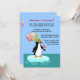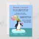 © Designs socialitas. Um pinguim bonitinho com convite de aniversário de criança de balões pronto para você personalizar. Adicione informações adicionais à parte traseira, como instruções ou mapa.