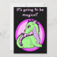 O adorável dragão de kawaii verde e roxo convida-o a participar numa celebração de aniversário mágica. O texto diz "Vai ser mágico." Todo texto é personalizável.