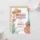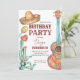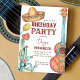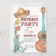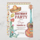 Modelo de convite de aniversário de fiesta mexicana. Chapéu sombrero, guitarra mexicana, cacto, script moderno e antigo.