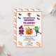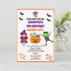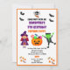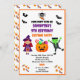 Convite de aniversário de Halloween bonito com monstros de Halloween divertidos com tipografia festiva de Halloween que você pode facilmente personalizar para o dia muito especial de sua Criança.