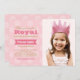 Um convite de festas real moderno e na moda para sua pequena princesa! Possui texto e foto personalizados com faixa e fundo padrão de bolinhas. Cor-de-rosa-claro e rosas claro com cores de sotaque branco e dourado.