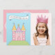 Um convite de festas real na moda para a sua pequena princesa! Inclui um castelo cor-de-rosa e um bolo em camadas com a parte superior da coroa e espaço para a foto do seu filho. As cores incluem rosa, roxo, amarelo, azul e verde.