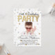 Um Dourado e perfeito confete de brilho, convite de festas elegante e feminina para ela no seu fabuloso aniversário de 70. Bolinhas brilhante branco brilhante e padrão dourado com impressão. Na moda e classe para uma reunião formal de rico ou diversão casual.