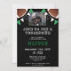 Convite de aniversário Fotográfico do American Football Ball. Bolas de futebol e bandeiras de festa de aniversário em cores verdes, pretas e brancas. Adicione sua foto e personalize-a com seu texto. Excelente para rapazes que adoram futebol.