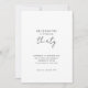 Comemore em estilo com este elegante convite minimalista para aniversário de 30 anos, com um fundo branco limpo, tipografia moderna e um sotaque escrito à mão. A parte de trás inclui espaço para uma foto pessoal, adicionando um toque exclusivo e pessoal à celebração do marco. Perfeito para uma festa de aniversário moderna.