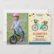 Convide seus convidados com este convite de aniversário legal com uma bicicleta colorida com tipografia vibrante contra um fundo de pergaminho. Basta adicionar os detalhes do seu evento neste modelo fácil de usar e adorar este cartão com a foto favorita do seu filho para torná-lo um convite generoso. Sacudir a carta para revelar uma bela textura de grama verde na parte de trás da carta.