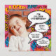 Personalize com o nome e a foto da aniversariante ou do garoto e todos os detalhes da festa. Um divertido e legal livro de banda desenhada retrógrado de qualquer idade inspirou um convite de aniversário que coloca o wham, zap, pow no evento de celebração de aniversário de qualquer super-herói. Projetado por Thisnotme©