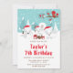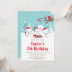 Este belo e divertido convite de aniversário apresenta uma adorável família de raposa-ártica em um cenário maravilhoso de inverno com árvores com capas de neve e um pássaro vermelho em um galho com Holly. As raposas de Santa Hats adicionam um toque festivo. Ao fundo está um céu verde azul teal e flocos de neve caindo. O texto combina fontes decorativas e sans serif para um aspecto na moda e moderno. Isto é perfeito para um aniversário temático de Natal.