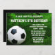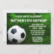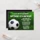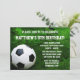 Um convite de aniversário moderno para uma bola de futebol apresentando um design verde de grama verde. Personalize facilmente a sua festa!