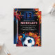 Chute a festa de aniversário do seu filho com este design de aniversário desportivo. A tipografia de uma camisa desportiva e uma trabalho de arte excitante dão a esta design uma vibração ousada e otimista. Perfeito para o aniversário de seu fã favorito. Ordene hoje, com ou sem balas para enforcar.
