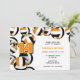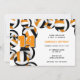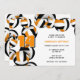 Este convite de festas temático de vôlei apresenta volicola em cluster laranja, preto e branco nas bordas esquerda e superior na frente e um cluster de solteiros cobrindo o verso do convite - personalize os detalhes do partido em coordenação de cores em fundo branco - por katz_d_zynes