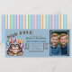 Convite de aniversário de bebês guaxinins/mapache com bolo de aniversário. Dois mapaches para a celebração de aniversário de 5 anos de dois meninos gêmeos. 5 velas e eles fazem um cinco alto. Bonito e elegante. Personalize com sua própria foto pessoal. Tudo personalizável.