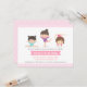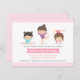É hora de tropeçar. É hora de brincar. É hora de celebrar o aniversário de alguém! Se você está planejando fazer uma festa de aniversário de ginástica divertida para a aniversariante, você tem que escolher esse convite bonito, giro e colorido. O convite apresenta três meninas nos "Gymnastics": cores de menta, roxo e rosa, cada uma com um penteado diferente e uma pose graciosa. Um padrão de listras rosa doce para fundo. Personalize facilmente com os detalhes do seu partido.