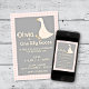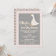 Convide sua família e amigos com esta garota personalizável, um convite para primeiro aniversario de festa de ganso de bobo. Ele apresenta uma ilustração aquosa de um ganso branco giro com uma borda cor-de-rosa e um coração com padrão de retalhamento. Personalize adicionando seus detalhes. Você pode alterar a(s) fonte(s). Design rosa, branca e cinza.