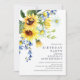 Belo convite de aniversário floral de girassol de cor d'água colocado sobre um fundo branco nítido. Sacudir o nosso convite de aniversário para ver uma floração de cor-de-água negra coordenadora para um toque especial extra