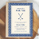 Celebrar com este na moda e o convite de aniversário moderno do campo de golfe, perfeito para aniversários do marco adulto de qualquer idade! Apresentando tipografia ousada, clubes de golfe cruzados, um ícone de bola de golfe e uma paleta de cores azul e creme limpa, este convite para o "PAR-TEE" dá o tom para um encontro divertido e sofisticado. O convite apresenta um monograma personalizado e um marcador etário, fazer ideal para 30, 40º, 50º, 60º aniversários e além. Quer você esteja hospedando uma festa no campo de golfe local ou planejando um clube de campo, este design adiciona um toque clássico ao seu evento. Personalize-o com o nome do convidado de honra, os detalhes do partido, o contato RSVP e as informações do local. Excelente para homens e mulheres que amam golfe ou desfrutam de um vibe esportivo e de alta escala.