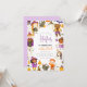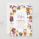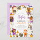 Convide a família e os amigos para um tempo espetacular com estes convites de aniversário bonitos de Halloween. Esta design apresenta uma borda pintada à mão de personagens divertidos do Dia das Bruxas, há crianças em fantasias, gatos pretos, morcegos, abóboras sorridentes, fantasmas, esqueleto dançante, aranhas, balões, estrelas, poções mágicas, crânio de olhos coronários, vassoura voadora, milho doce e muito mais! Dentro no quadro, o nome da aniversariante aparece em letras grandes, com sua idade e detalhes de festas em tipografia elegante. O esquema de cores do texto é uma paleta clássica do Dia das Bruxas: laranja, roxo, cinza e preto! Cartões invertidos a uma cor púrpura pastel. Escolhemos "CINCO" para a modelo, mas estas cartas são excelentes para uma primeira festa de aniversário ou crianças de qualquer idade! Para personalizar, basta clicar em "Personalizar este modelo" e editar o texto para apresentar as suas próprias informações de celebração! Se tiver alguma pergunta, por favor, não hesite em chegar até lá - eu ficarei feliz em ajudar! Basta notar que não posso modificar uma ordem existente. Navegue na coleção acima ou visite minha loja para ver mais convites de aniversário do Dia das Bruxas.