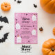 Celebre seu dia especial com este convite de aniversário de Halloween adorável! Apresentando um fundo rosa lúgubre e fantasmas bonitos vestindo chapéus de festa, este convite é perfeito para uma celebração assustadora. A design divertida e festiva estabelece a palco de um cheio de aniversário de truques, guloseimas e alegria no Halloween! Personalize-o com todos os detalhes da festa e envie um convite que certamente encantará convidados e tornará o grande dia do seu filho inesquecível.