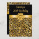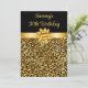 Este elegante e glamouroso convite de aniversário apresenta um arco de ouro e fita com manchas de impressão de ouro e leopardo preto. O texto combina o script manuscrito e as fontes sans serif modernas para um aspecto elegante e sofisticado.
