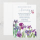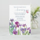 Convite para festa de aniversário de íris em aquarela com jardim floral em aquarela roxa, fácil personalização.