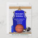 Este convite de aniversário único apresenta uma camisola de basquete azul personalizada pendurada num armário com uma bola de basquete, tênis de basquete e uma garrafa de bebidas. A camisola é personalizável com seus próprios números e nome, para criar um presente único para o jogador de basquete ou fã de basquete. Se você precisar de uma combinação de cores diferente, entre em contato conosco pela loja antes da compra.
