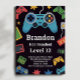 Alcance a diversão com este convite de aniversário de jogos legal para crianças! Com um controlador de videogame a cores aquáticas e uma ousada inscrição moderna, este design é perfeito para os jogadores que adoram jogar e celebrar. Personalize-o facilmente com o nome, a idade, a data da festa e os detalhes do seu filho para criar um convite que esteja pronto para alimentar o entusiasmo. Excelente para rapazes ou raparigas que desfrutam de jogos de consola, diversão online ou festas ao estilo do 'arcade'!
