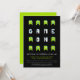 alienígenas de feiticeiros loucos com pixel gráfico, convites para festas com estilo de jogos. Perfeito para convidar os jogadores favoritos do seu filho para a sua festa de aniversário. Personalize com seus próprios detalhes. Desenhada e ilustrada exclusivamente por Sarah Trett para www.mylittleeden.com em zazzle.