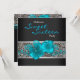 Convite de festa de aniversário de dezesseis anos doce leopardo azul teal preto.