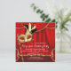 Convite de festa de aniversário de mascarada com uma bela máscara de penas de Mardi Gras dourada em um fundo de cortina vermelha e dourada. Este convite de festa de aniversário vermelho e dourado é facilmente personalizado para a sua festa ou evento, adicionando detalhes do evento, estilo de fonte, tamanho e cor da fonte e texto.