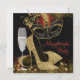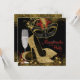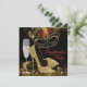 Convite de festa de máscaras elegante vermelho, preto e dourado com taça de champanhe, máscara de penas e sapatos de salto alto dourados. Você pode personalizar facilmente este convite de festa de máscaras preto e dourado para o seu evento, simplesmente adicionando seus detalhes no estilo de letra e cor, e texto de sua escolha.