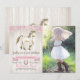 Convites de festa de aniversário de meninas com cavalo com cavalo watercolor fofo em um fundo floral watercolor rústico e madeira. Este convite de festa de aniversário de cavalo tem espaço para sua foto e é facilmente personalizado para o seu evento, basta adicionar seus detalhes.
