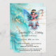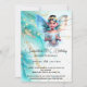 Uma bela e mágica cena florestal com árvores aberrantes cobertas de neve formando um caminho que leva a um portal mágico e brilhante. Uma princesa angélica está em frente ao portal olhando para dentro. Ela está vestindo um vestido branco de bola e regal e se preparando para entrar no Reino mágico. Os gráficos são colocados sobre um fundo azul-claro, pálido, infundido com flocos de neve brancos e timidez etérea. Este convite para apresentação e impressão é ideal para um aniversário de fantasia de conto de fadas ou para uma clivagem do tema de maravilha de inverno. Os modelos podem ser personalizados para atender às suas necessidades.