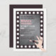 Convide seus melhores amigos para uma celebração glamourosa! Este convite elegante, moderno, chic e na moda apresenta um espelho com luzes brilhantes que fornecem espaço para personalização dos detalhes do partido. Uma mão no fundo está segurando um batom. Paleta de cores de Eterno com preto, branco e cinza como principal, com toques de cor rosa-claro.