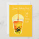 Um legal e fofo chá de bolhas coloridas, funk, chamado convite de aniversário temático, adequado para uma menina com um gráfico de chá de bolhas com fundo laranja. O texto e a cor de fundo podem ser totalmente personalizados para incluir seus próprios detalhes pessoais.