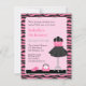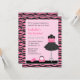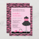 Você está nascer de andar na pista! Celebre com a aniversariante com uma festa de aniversário de moda glamourosa e fabulosa! Este convite elegante, moda, na moda e elegante é perfeito para a ocasião. Ele apresenta um manequim que tem um topo rosa, saia fria e colar pérolas. No chão há uma bolsa e calçados de salto alto. Esquema de cor rosa e preta para design feminino e plano de impressão padrão de zebra, que é perfeito para o grupo etário das meninas, adolescente para adolescente. Personalize com os detalhes do seu partido!