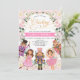 Um convite de aniversário de um pirata-pirata em rosa feminino e ouro.