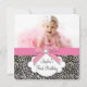 Convite de festa de aniversário fotográfico para meninas com leopardo rosa. Este convite de festa de aniversário de leopardo rosa é facilmente personalizado para o seu evento, basta adicionar os detalhes do evento, estilo de fonte, tamanho e cor da fonte e a redação.