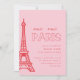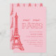 Celebre sua garota no aniversário dela com nosso convite de aniversário de Paris moderno, tenente, rosa e vermelho! Esta design apresenta pintas vermelhas e vermelhas com a torre Eiffel e a tipografia ao estilo parisiense.