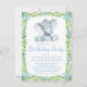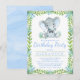 Convites de festa de aniversário de elefante menino com adorável elefante em aquarela vestindo uma gravata borboleta fofa em um fundo de vegetação de selva e aquarela. Este convite de festa de aniversário de elefante é facilmente personalizado para o seu evento, basta adicionar seus detalhes.