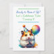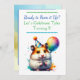 Convites de Aniversário de Menino com tema de hamster azul e verde. Um hamster pintado à aguarela segurando um balão. Fofo para crianças de qualquer idade!
