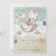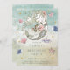 Uma aquarela e sereia ilustrada com tema sob o convite de aniversário marinho. Sereia e sobreposição de peixes sobre um fundo de aquarela com criaturas do mar ao seu redor. Um belo convite para estilo artístico e caprichoso.