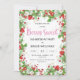 Prepare-se para uma festa de aniversário doce de morango! Este é um tema de morango doce, convite de aniversário com uma moldura feita de morango, flores brancas e verde. É complementado com uma fonte divertida e um lado inverso das sementes de morango giro. Perfeito para a comemoração da festa de aniversário da sua menina. Personalize facilmente com suas próprias informações para torná-las suas.