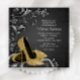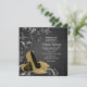 Mulheres convites de aniversário pretas e douradas com calçados de alto salto de ouro bonito e pérolas num lindo fundo preto de espiral. Este elegante convite de aniversário preto e dourado é facilmente personalizado para o seu evento, simplesmente adicionando os seus detalhes no estilo de letra e cor, bem como o texto da sua escolha.