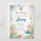 Essa design encantadora apresenta ilustrações sonhadoras de aquarela de uma cena submarina, enfeitada com sotaques dourados brilhante. Perfeito para uma celebração mágica, esse convite captura a beleza do oceano com delicados elementos aquáticos, criando uma vibração caprichosa e elegante. Ideal para aqueles que procuram um convite único e encantador que fará ondas em qualquer festa de aniversário.