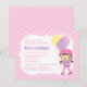 É assim que vamos! Venha skate e comemore com a aniversariante em uma festa de aniversário de skate! Este convite de aniversário giro e doce de rosa e roxo tem uma menina bonita com o cabelo amarrado em rabos de pônei. Ela está em patins com guardas de capacete, rodas, joelho e cotovelo e segurando vários balões. Fundo do padrão de chevron cor-de-rosa zigzag.Personalize facilmente com os detalhes do seu partido.
