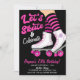 Convite Festa de Aniversário de Patins Quadra Rosa e Preto
