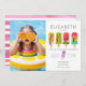 Personalize os convites adicionando o nome e os detalhes da festa do seu filho O convite é decorado com picolés coloridos e tipografia original. Design de convite neutro para a sua festa de verão! Se você precisar coordenar ITENS CORRESPONDENTES, verifique nossa coleção ou compro correspondente...como convites, adesivos, bolsas de festas e placas de festas...