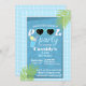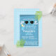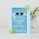 Este design apresenta óculos escuros do coração azul em um fundo de piscina azul correspondente! É o convite perfeito para qualquer festa de piscina!