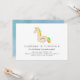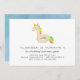Convite de aniversário de menina simples e giro, com uma boia unicórnio com cabelo colorido do arco-íris pintado com aquarela. O texto diz: "É uma festa de Piscina! Venha fazer um salto!" Personalize esta placa de modelo, adicionando as informações do participante do seu filho.