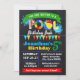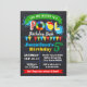 convite de festas de piscina de aniversário num esquema de cores primárias, adequado para qualquer idade. Adicione seu próprio texto ao modelo, para mais personalização (cor da fonte, estilo da fonte, plano de fundo), clique em personalizar, role para baixo e clique no link "clique para personalizar ainda mais":
